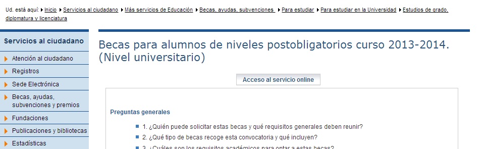 Desde las 00:01 de la noche pasada se pueden presentar las becas mec/2014. Los estudios se denominan ahora «post obligatorios» en vez de universitarios y no universitarios aunque cuando accedáis al trámite podéis ver esta distinción. Ahora tratemos cómo acceder a este tramite de presentación, una guía paso a paso y qué cosas básicas debéis hacer para presentarla correctamente punto por punto.