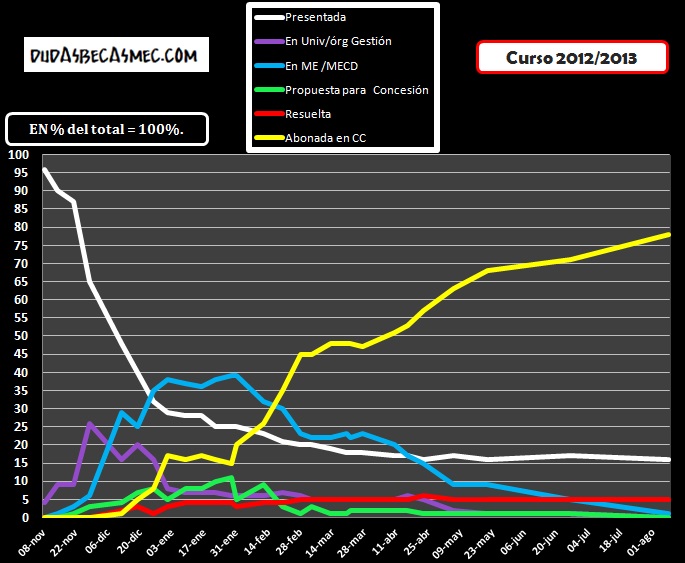 Como podéis comprobar en la imagen posterior, éste fue el desarrollo de los estados que pasa la beca, en porcentaje, durante todo el año académico anterior: