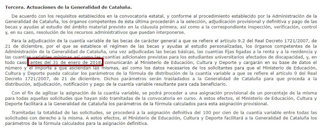 Tercera (y más importante: ¿Quienes son los responsables de que los estudiantes catalanes reciban las becas mucho más tarde que el resto de estudiantes del estado español?
