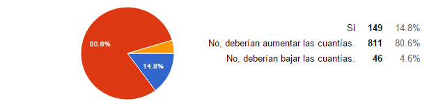 En este caso solo 3 de cada 20 personas piensan que sí se ajustan al gasto real del alumno, mientras un abrumador 80,6% piensan que estas deberían aumentar su cuantía.