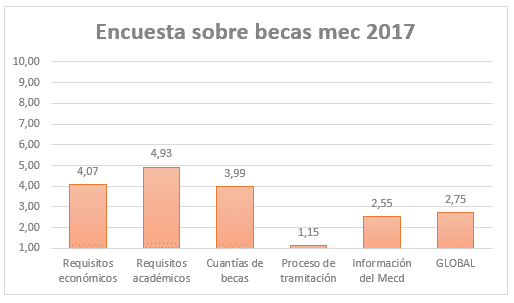 La nota global final para el sistema de becas mec la sitúan los encuestados en un 2,75, muy por debajo del aprobado, y algo menor al año pasado (2,87).