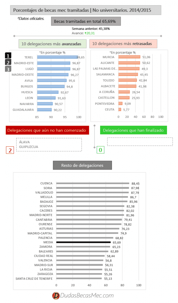 33 de las 43 unidades han superado al 50%. La media es del 65,39% teniendo un buen ritmo de avance diario e igual al de las becas universitarias.