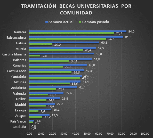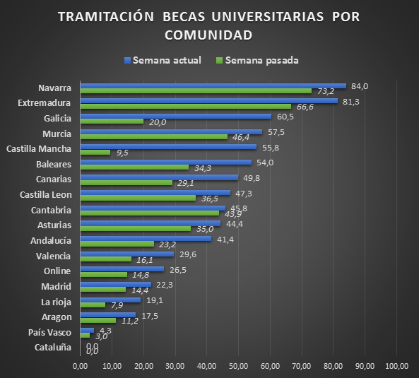 Porcentaje total actual de becas tramitadas: 47,43% (34,40% sin contar catalanas)