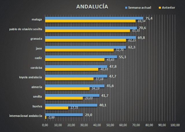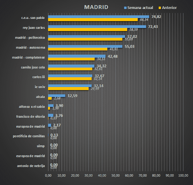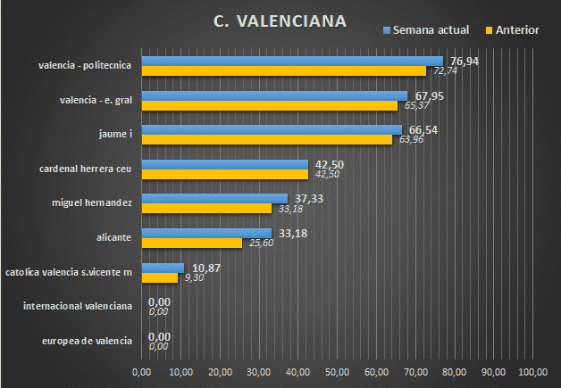 Análogo al seguimiento por comunidad autónomas, publicamos el análisis semanal del estado de tramitación por universidades con un avance de 9 puntos semanales aupando el total al 36,37% de becas tramitadas, una de cada tres del total. Además, los gráfico traen más información.
