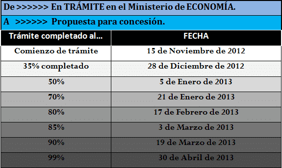 Fechas/2013 de paso de trámite a «Propuesta para Concesión».