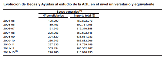 Con todo esto, y lo que realmente importa, es que con el dinero gastado real en una año en total, y con los becarios totales reales, las becas han vuelto a niveles de 2008, como publicamos aquí y sabiendo de dónde venía cada dato.