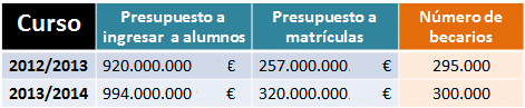 Primero de todo aclarar que cada año hay dos partidas distintas en los BOE de las becas mec. Del presupuesto total siempre se destina una parte diferenciada al pago de tasas de matrículas, que se suele llevar entre 250 y 310 millones de €, y luego otro presupuesto (el restante) para repartir entre los alumnos llegando en dinero líquido (aunque este año, «gaseoso») a las cuentas de los mismos.