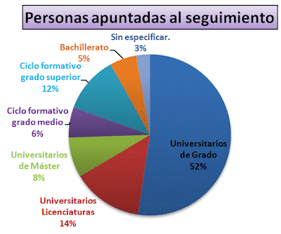 Se han apuntado a las listas 149 personas, de las que 78 son de grado, el 52%. Se mantienen los porcentajes en los demás, subiendo las de máster y bajando las de bachillerato.