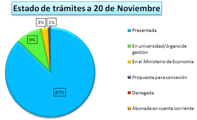 Hablando ya de los trámites, ha habido avances en todas las listas, especialmente las de universitarios. Algunos incluso tienen ya la suerte de tener el trámite en el ministerio de economía, que recordamos lo gestiona el departamento de tecnología de la información del ministerio de educación en el caso de las universitarias.
