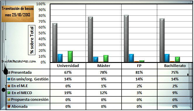 Las universitarias tienen la particularidad de tener muchas becas en trámite en el Mecd , la que más, sin embargo son los demás niveles educativos los que tienen más becas en el M.E.