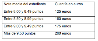 La medida consiste en que, aquellos alumnos con más de un 8 hasta un 10 de media en las asignaturas superadas en el curso anterior (nota de acceso en caso de primer curso ya sea de grado, máster o fp), recibirán las siguientes cuantías: