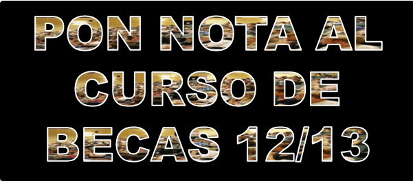 Debéis escoger una opción del 0 al 10 para cada uno de ellos. Los resultados serán publicados en breve y elaboramos las notas generales de este curso, para ver quién aprueba y quién suspende en una España necesitada de un cambio en la consideración de las becas mec. Estos datos serán enviados al MECD, a EL PAÍS y a EL MUNDO el martes. El formulario a continuación: